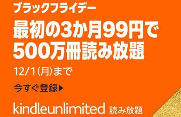 「Kindle Unlimited」3か月99円など、Amazon Kindleストアのブラックフライデー/最大15%OFFのまとめ買いキャンペーンも実施中。12月1日まで【Book Watch/セール情報】